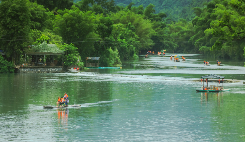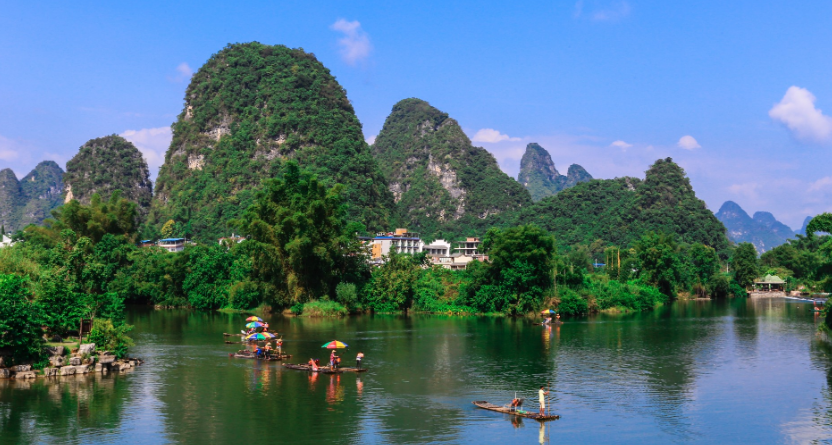 2、竹筏游,起航时间为8:00-17:00,重大节日或巡检将暂停,通过当地有关人员关注。有两个出发地点(码头)。一个是杨堤,另一个是兴坪。两小时航次216元/人,50分钟航次98元/人,四人一筏。如果你需要打包一个筏,你需要买四张票。7岁以下(1.2米以下)和70岁以上的游客不得乘坐。漓江的竹筏过去是个体经营的。为了得到客户的积极评价,他们努力工作。由于2015年阳朔政府成立的公司,所以很多船夫会索要小费,如果在不给钱他们开船的速度变快,然你没有办法拍照。然而这里的景色是无与伦比的。悬挂在联合国总部的风景是兴平黄瀑布的倒影。我们使用的20元纸币的背景就在竹筏码头。