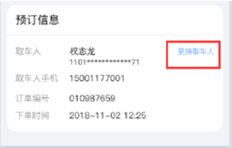在取车前可以更换取车人,填写取车人姓名、身份证号及手机号即可。代取车人仅负责转交车辆,实际使用车辆为下单本人,租赁期内的一切责任将由下单人承担。温馨提示:代取车人的信息需要认证通过才可以更换代取车人